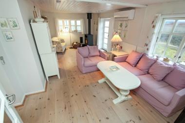 Fra entré er der udgang til indhegnet terrasse / solgård med havemøbler og grill. Her perfekt hvis børn eller husdyr medbringes. Et fantastisk velholdt og hyggeligt helårshus hvor parret eller den lille familie på max 4 personer får mulighed for få en afslappet ferie i unikke opgivelser tæt ved Bovbjerg Klint, Vesterhavet, Ferrings sø og Jens Søndergaards Museum. inden for 30-45 minutter nås både flere aktiviteter og shoppingmuligheder.
