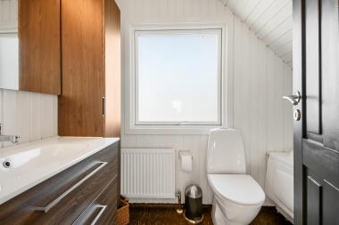 Godt udnyttet feriehus i 2 etager på 163 m2 med 4 værelser: 1DS + 1DS + 1DS + 1DS. Barneseng og højstol til de små gæster. Huset er lyst og moderne indrettet og i stueplan finder i et helt nyt køkkenet som er veludstyret med keramisk komfur, køle-/fryseskab samt opvaskemaskine, i forlængelse af køkkenet er spisestuen som er med trægulv. Stuen er indrettet med lædermøbler og der er klinker på gulvet, Smart-TV med danske og tyske programmer og brænd.eovn, varmepumpe, CD afspiller. Stuen er indrettet med et stort vinduesparti som giver et fantastisk lysindfald, og fra stuen har man selvfølgelig også udsigt over Vesterhavet. I stueplan findes der desuden et af husets badeværelser som er med toilet, bruser, håndvask, vaskemaskine og tørretumbler. I entreen er trappen op til 1. sal, her finder du 3 soverum med hver 1 DS samt et nyrenovret badeværelse med håndvask, toilet, og dejligt spabad. Fra det store soveværelse er der udgang til en fantastisk delvis overdækket balkon, hvorfra man har panoramaudsigt over Vesterhavet og området, balkonen er med glasparti. Desuden er der helt nye vinduer som er lydsioleret. Dette hus må simpelthen opleves, hvis man vil bo tæt på Vesterhavet og uanset hvor man næsten er i huset kan nyde udsigten over havet. Har man el-bil eller en Plug-In hybrid, så er der opsat ladeboks ved huset.