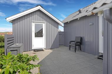 Feriehuset ligger på en stor, privat naturgrund på hele 1.488 m² – kun 100 meter fra det brusende Vesterhav, i udkanten af feriehusområdet. Her kan du nyde livet på terrassen, som både har en delvis overdækket terrasse her er der indhegnet og fra denne terrasse kan man nyde solnedgangen over klitterne ved Vesterhavet, perfekt uanset vejret. Der er også en åben terrasse. Der er havemøbler, solvogne og en gasgrill, så du nemt kan flytte rundt efter sol, skygge eller læ. Til familiens mindste er der en sandkasse, som indbyder til leg og sjov.