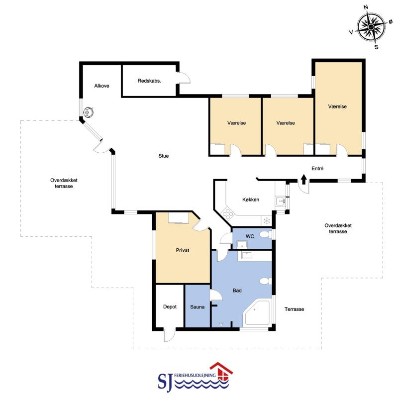 Virkelig dejligt og moderne feriehus bygget i 2005 med hvidlakerede lofte og vægge og trægulve med løse tæpper. Godt udstyret køkken med keramisk komfur, emhætte, køle-/fryseskab, opvaskemaskine, mikroovn og linoliumsgulv. Dejlig stue med lædermøbler, TV med cromecast og danske og tyske programmer, radio og en god brændeovn som sørger for en god og dejlig varme også på de kolde dage. Badeværelse med toilet, håndvask, bruser, spa og sauna. Ekstra badeværelse med toilet og håndvask, vaskemaskine og tørretumbler. 3 gode soverum: 1DS + 1DS + (1DS + 2K). Alkove med en sovemulighed. 2 husdyr er tilladt. Ikke rygerhus. 1 barnestol.