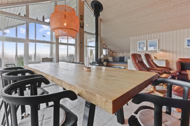 Godt udnyttet feriehus på ca. 105m2 som er bygget i 2005. Huset har 3 soveværelser (1DS, 1DS+1DS). Alle soverum har trægulve. Huset er smagfuldt og praktisk indrettet i kvalitetsmaterialer og er holdt i flotte, afstemte farver. Allerede når I parkerer bilen lige ved huset bliver I klar over at det er noget specielt. Flot, praktisk, overdækket kanap byder jer velkommen. Køkkenhjørnet har alt i hårde hvidevarer og i service og køkkengrej. Der er komfur med glaskeramiske kogeplader, emhætte, opvaskemaskine, køleskab med fryseboks. I opholdsstuen er der bl.a. et dejligt spisebord tæt ved køkkenet, fladskærms-TV med tyske og danske kanaler, Chromecast for streaming fra din telefon eller medbragte device, DVD-afspiller, radio med CD-afspiller, lækre lædermøbler samt en hyggelig brændeovn der sammen med den opsatte varmepumpe er med til at minimere el-regningen. Der er også en lille alkove med madras og puder, samt en stige til den hyggelige hems. Noget der helt sikkert vil tiltale de små. Fra stuen er der adgang til en tilbygget udestue. Her er det et ovalt bord med dejlige kurvemøbler omkring og 2 gyngestole. Et fantastisk sted at nyde udsigten til området, til Ferring sø eller til klitterne ved Vesterhavet eller måske bare læse sin medbragte bog eller spille spil med familien. Opholdsrummene er bygget i kip og har praktiske klinkegulve. Det får huset til at fremstå luftigt, moderne og meget rengøringsvenligt. Bryggers med ekstra, praktisk håndvask, mikroovn og vaskemaskine. Flot badeværelse med toilet, håndvask, bruseniche og klinkegulv med gulvvarme. Ikke ryger hus. Max 1 husdyr tilladt.