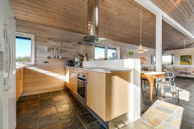 Dette flotte hus ligger på en 1100 kvm naturgrund i et roligt feriehusområde, ca. 3 km. sydøst for Vejlby Klit. Afstanden til Ferring sø er kun 200 m og til Vesterhavet er der 400 m. Lofte og vægge er af hvidolieret træ og der er skifer klinkegulve med gulvvarme med løse tæpper. Flot udsigtsstue med ekstra TV. Veludstyret køkken med bl.a. amerikansk køleskab, som er kombineret med husets dejlige stue.Her finder i husets farve-tv med danske kanaler og parabol (dog kun med tyske kanaler) og stereoradio med CD-spiller. Flot badeværelse med brusenische. Ekstra toilet med vaskemaskine. 2 soverum: (DS) + (DS+2K). Hems med 2 sovepladser. Terrasseforholdene er gode – her har man altid mulighed for at finde læ for vinden på den 100 kvm store terrasse der omgiver huset. Havemøbler er også til rådighed. Alt i alt et særdeles attraktivt feriehus. Husdyr tilladt.