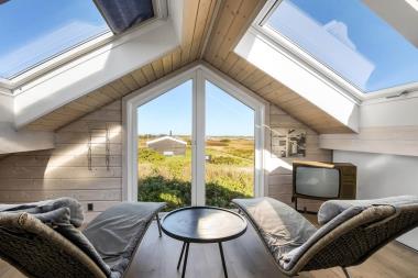 Flot, moderne træhus med udsigt til Ferrings Sø med de høje klitter ved Vesterhavet i baggrunden. Gratis Internet. Perfekt til par men også til familier på op til 6 personer. Skal opleves.