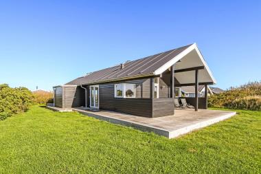 Dette flotte hus ligger på en 1100 kvm naturgrund i et roligt feriehusområde, ca. 3 km. sydøst for Vejlby Klit. Afstanden til Ferring sø er kun 200 m og til Vesterhavet er der 400 m. Lofte og vægge er af hvidolieret træ og der er skifer klinkegulve med gulvvarme med løse tæpper. Flot udsigtsstue med ekstra TV. Veludstyret køkken med bl.a. amerikansk køleskab, som er kombineret med husets dejlige stue.Her finder i husets farve-tv med danske kanaler og parabol (dog kun med tyske kanaler) og stereoradio med CD-spiller. Flot badeværelse med brusenische. Ekstra toilet med vaskemaskine. 2 soverum: (DS) + (DS+2K). Hems med 2 sovepladser. Terrasseforholdene er gode – her har man altid mulighed for at finde læ for vinden på den 100 kvm store terrasse der omgiver huset. Havemøbler er også til rådighed. Alt i alt et særdeles attraktivt feriehus. Husdyr tilladt.