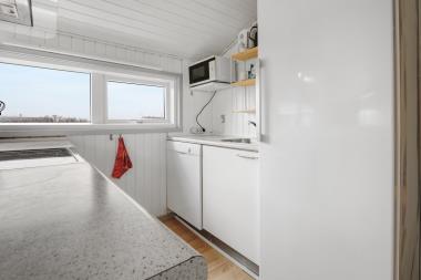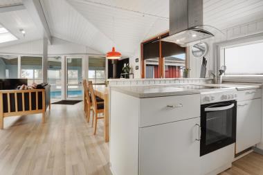 Godt udnyttet hus med pool på 110 m2. med 3 soverum (1DS, 1DS, 1DS). Køkkenhjørne med komfur med glaskeramiske kogeplader, emhætte, køleskab med fryseboks, mikroovn og opvaskemaskine.