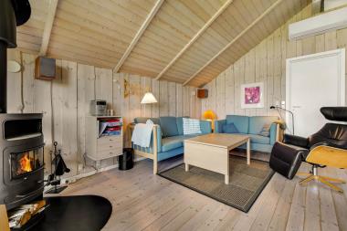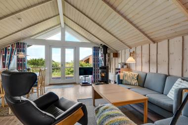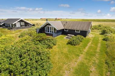 Dette flotte feriehus ligger på en 1200 kvm naturgrund i et roligt feriehusområde med blik ned til Ferring sø, ca. 3 km. sydøst for Vejlby Klit. Afstanden til Ferring sø er kun 200 m og til Vesterhavet er der 400 m. Lofte og vægge er af hvidolieret træ og der er trægulve med løse tæpper. Gratis internetadgang. Veludstyret køkken som er kombineret med husets dejlige stue.Her finder i husets tv med DR kanaler, parabol (med tyske kanaler) og stereoradio med CD-spiller. Flot badeværelse med brusenische og direkte adgang til husets sauna. 3 soverum: (DS) + (DS) + (2K) Terrasseforholdene er særdeles gode – man har altid mulighed for at finde læ for vinden på den 50 kvm store terrasse der omgiver huset. Havemøbler, liggestole. Alt i alt et særdeles attraktivt feriehus. Husdyr ikke tilladt.