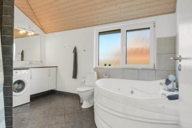 Husets stue og køkken er samlet i et stort rum. I samme rum hører faktisk også en hems med to enkeltsofaer. Køkkenet har el-komfur, køleskab med frostboks og opvaskemaskine. Stuen er indrettet med lædermøbler, brændovn, TV med danske og tyske kanaler, DVD og radio med CD afspiller. 3 soverum: 1DS + 1DS + 1KS. Hems med 2 sovemuligheder. Badeværelse: Toilet, håndvask, bruser, sauna, spa og gulvvarme. Gæstetoilet med håndvask og toilet. Køkken og stue er indrettet med klinkegulv og de store vinduespartier sørger for et godt lysindfald i rummet. Soveværelser og hems er med trægulv. Ikke rygerhus. 2 husdyr er tilladt.