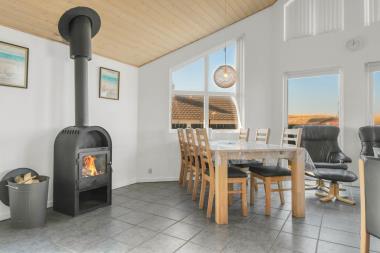 Husets stue og køkken er samlet i et stort rum. I samme rum hører faktisk også en hems med to enkeltsofaer. Køkkenet har el-komfur, køleskab med frostboks og opvaskemaskine. Stuen er indrettet med lædermøbler, brændovn, TV med danske og tyske kanaler, DVD og radio med CD afspiller. 3 soverum: 1DS + 1DS + 1KS. Hems med 2 sovemuligheder. Badeværelse: Toilet, håndvask, bruser, sauna, spa og gulvvarme. Gæstetoilet med håndvask og toilet. Køkken og stue er indrettet med klinkegulv og de store vinduespartier sørger for et godt lysindfald i rummet. Soveværelser og hems er med trægulv. Ikke rygerhus. 2 husdyr er tilladt.