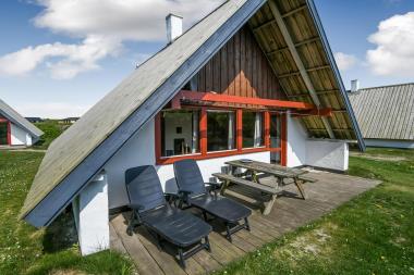 Udenfor huset er der en sydvest-vendt terrasse med havemøbler og grill. Terrassen er bindeled mellem huset og den omkringliggende natur, og bidrager i høj grad til, at følelsen af ferie, fred og ro kan sænke sig. Huset er en del af Fjaltring Ferieby som ligger klinet op ad klitterne ved Fjaltring Strand. Lige på den anden side af klitten ligger noget af det flotteste badestrand som Danmark har at byde på. Stranden og havet ligger til fri afbenyttelse året rundt.