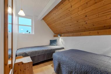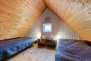 Feriehuset er på ca. 90 m2 og fremtræder næsten færdigrenoveret.  Der er en hyggelig lys opholdsstue med højt til loftet.  Der er gode, komfortable møbler, og på kølige aftener er det muligt at gøre opholdet behageligt ved at tænde op i brændeovnen og/eller varmepumpe. Der er installeret et nyt køkken med afdæmpede blå farvenuancer.  Køkkenet indeholder de fleste moderne bekvemmeligheder såsom køl og frys, keramiske kogeplader, ovn og opvaskemaskine.  Hvis feriehygge indbefatter hjemmelavet mad, så byder huset på rig mulighed dertil. Huset giver plads til 2 soveværelser i stueplan med i alt 3 sovepladser.  Desuden er der en hems med to store enkeltsenge, som kan danne en dobbeltseng. Badeværelset er udstyret med toilet, håndvask, badekar og bruser.