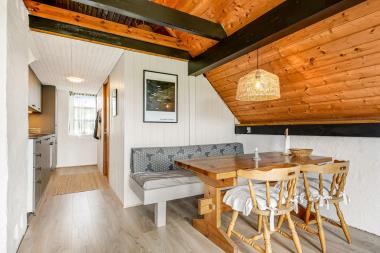 Fra opholdsstuen er der udgang til en lille, overdækket terrasse med havemøbler, 2 solvogne og Weber kulgrill. Huset er en del af Fjaltring Ferieby som består af 25 næsten identiske A-huse fordelt i 5 cirkler. Hele Feriebyen ligge i en dejlig ”gryde” i det fredede klitlandskab kun ca. 200m fra Vesterhavet. Ved fælleshuset er der el-bil-oplader til rådighed. Nyd en økonomisk ferie i et enkelt feriehus med en helt unik beliggenhed. Parker bilen og nyd at I resten af ferien kan gå til stranden på under 5 minutter. Oplev det brusende Vesterhav som hverdag byder på nye oplevelser. Gå en tur eller dyrk den daglige motion langs med havet, i det smukke landskab eller udforsk områdets mange andre muligheder.