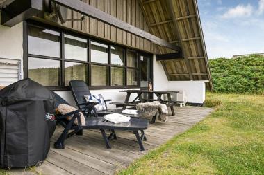 Fra opholdsstuen er der udgang til en lille overdækket terrasse med havemøbler, 2 solvogne og grill. Huset er en del af Fjaltring Ferieby, som består af 25 næsten identiske A-huse fordelt i 5 cirkler. Hele Feriebyen ligger i en dejlig ”gryde” i det fredede klitlandskab kun ca. 200m fra Vesterhavet. Ved fælleshuset er der el-bil-oplader til rådighed. Nyd en økonomisk ferie i et enkelt feriehus med en helt unik beliggenhed. Parkér bilen og nyd, at I resten af ferien kan gå til stranden på under 5 minutter. Oplev det brusende Vesterhav, som hver dag byder på nye oplevelser. Gå en tur eller dyrk den daglige motion langs med havet, i det smukke landskab eller udforsk områdets mange andre muligheder.