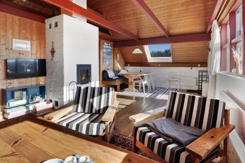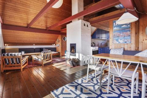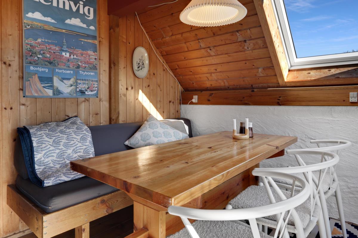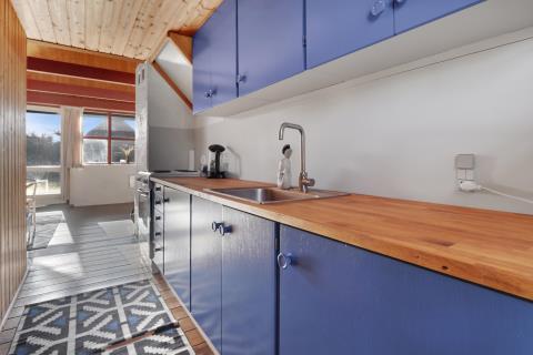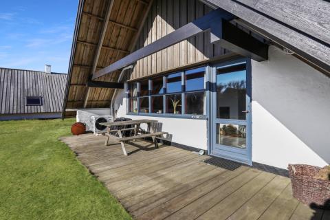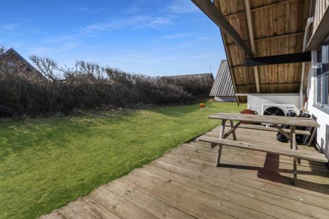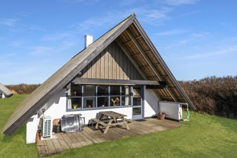 Fra opholdsstuen er der udgang til en lille, overdækket terrasse med havemøbler, 2 solvogne og grill. Huset er en del af Fjaltring Ferieby som består af 25 næsten identiske A-huse fordelt i 5 cirkler. Hele Feriebyen ligge i en dejlig ”gryde” i det fredede klitlandskab kun ca. 200m fra Vesterhavet. Nyd en økonomisk ferie i et enkelt feriehus med en helt unik beliggenhed. Parker bilen og nyd at I resten af ferien kan gå til stranden på under 5 minutter. Oplev det brusende Vesterhav som hverdag byder på nye oplevelser. Gå en tur eller dyrk den daglige motion langs med havet, i det smukke landskab eller udforsk områdets mange andre muligheder.