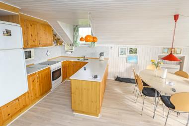 Køkkenet er praktisk indrettet med el-komfur, køleskab, 30 l. fryser og mikroovn. Huset har tre komfortable soveværelser med plads til 1 dobbeltseng, 2 enkeltsenge og 2 køjesenge. Badeværelset er udstyret med toilet, håndvask, bruser, vaskemaskine og gulvvarme, så du kan starte dagen behageligt.