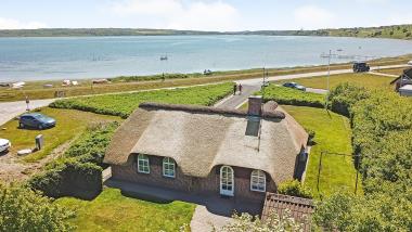 Denne perle af et feriehus med stråtag er beliggende kun 40 m fra Limfjorden og har en fantastisk udsigt over fjorden. Der er en badebro tæt på huset og der er gratis internetadgang.