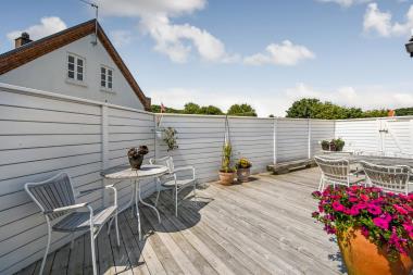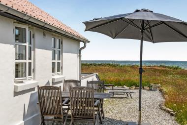 Huset er beliggende på en ca. 2474 m2 stor strandgrund med fantastisk beliggenhed og udsigt. Fra både stue og køkken er der panorama udsigt og der er udgang til en dejlig indhegnet terrasse med havemøbler, liggestole og gasgrill som kan flyttes rundt alt efter vejr og vind og efter hvor der findes en plads i solen. Cafe Odden ligger tæt på huset og bag den er der en ny flot naturlegeplads i træ og med rutsjebane. Unikt beliggende feriehus til den perfekte ferieoplevelse