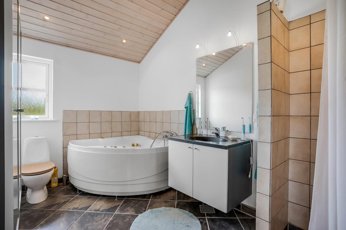 Det moderne badeværelse byder på toilet, håndvask, bruser samt gulvvarme, så der er lunt og behageligt året rundt.