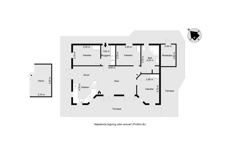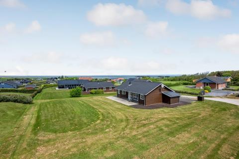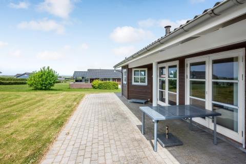 Udenfor finder du flere terrasser omkring huset, nogle delvist overdækkede, så du altid kan finde en god plads i solen eller læ. Her er havemøbler, solvogne og grill, så sommerdagene kan nydes fuldt ud i det fri.