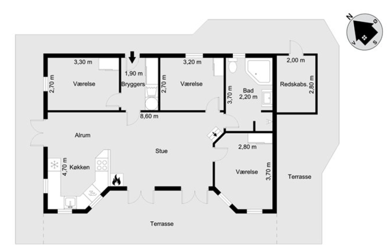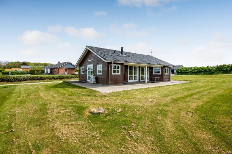 Udenfor finder du flere terrasser omkring huset, nogle delvist overdækkede, så du altid kan finde en god plads i solen eller læ. Her er havemøbler, solvogne og grill, så sommerdagene kan nydes fuldt ud i det fri.
