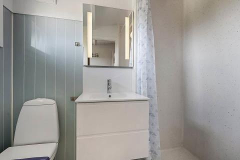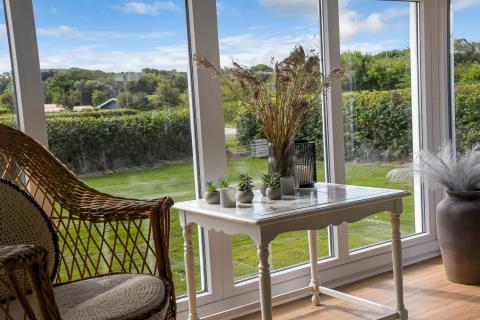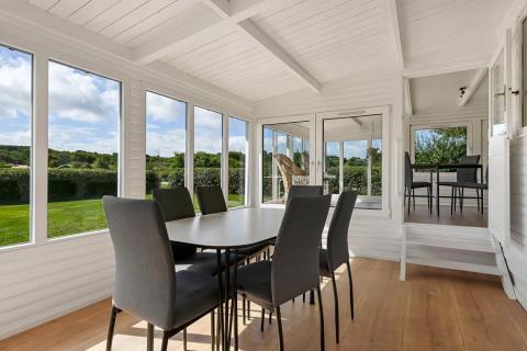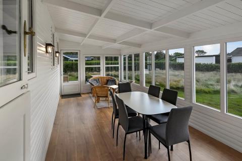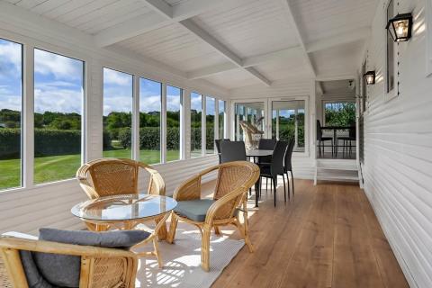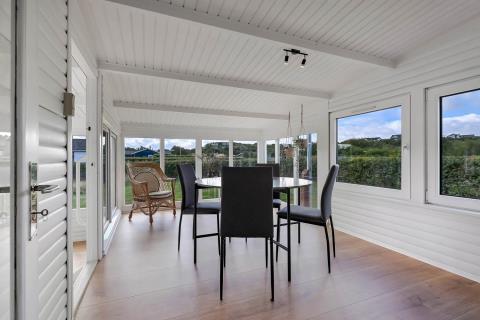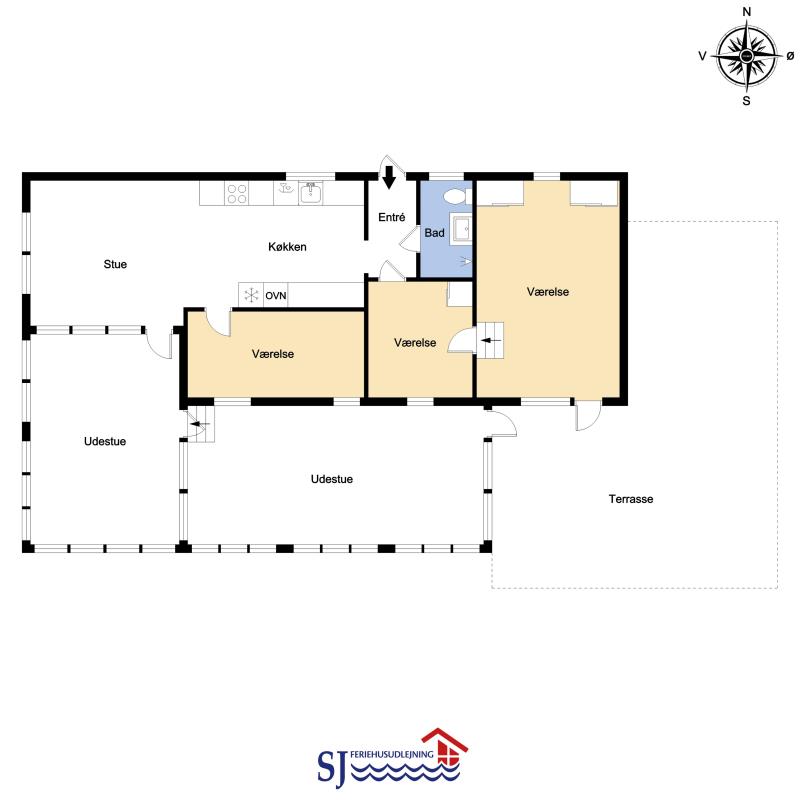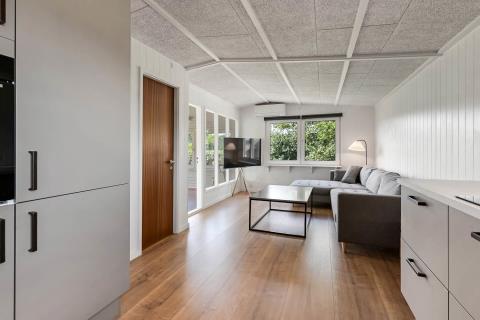 De 63 m2 er rigtigt godt udnyttet. Køkkenhjørne og opholdsstue stue er i samme rum. polstermøbler, smart-tv med danske og tyske kanaler samt mulighed for streaming via Apple-tv. Fra opholdsstuen er der udgang til er lys og venlig spisestue med spisebord og siddepladser. Herudover der også en fantastisk havestue med god plads og udgang til terrassen. Det flotte nye køkkenhjørne byder på det man skal bruge. Glaskeramiske kogeplader, indbygningsovn, køle-/fryseskab og opvaskemaskine 2 soveværelser (1DS, 1DS). Der er niveauforskel ved indgangen til begge soveværelser og fra det største soveværelse er der direkte udgang til terrassen. Lille badeværelse med toilet, håndvask og bruser. Ikke rygerhus. Max 2 husdyr tilladt.