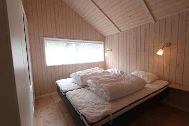 Dette flotte feriehus som er bygget i 2007 ligger på en 948 m2 stor grund for enden af en stikvej i børnevenlige omgivelser. Køkkenet fremtræder lyst og venligt med store vinduer og terrassepartier med havemøbler. Stuen som er kombineret med køkkenet er møbleret med flotte møbler og er udstyret med brændeovn, farve tv med DR 1. Parabol (dog kun med tyske kanaler), dvd og stereoanlæg med cd.Trådløst Internetadgang.Stue og køkkenafdeling med klinkegulv og gulvvarme. Huset har 3 gode soverum: 2 med dobbeltsenge og en med køjeseng. Desuden er der alkove i stuen med 2 liggemuligheder. Det skal understreges at huset kun er til 6 personer. 2 gulvopvarmede toiletter- den ene med spa. Lille bryggers med vaskemaskine. Tørretumbler i udhuset. Et lækkert feriehus på alle årstider. Til børnene er der sandkasse. Rygning ikke tilladt.