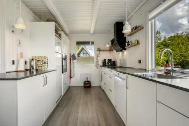 Huset rummer to hyggelige soveværelser, et moderne badeværelse med håndvask, bruser og behagelig gulvvarme samt et køkken med alle nødvendige faciliteter. Her er alt, du behøver for at nyde ferien i komfortable omgivelser.