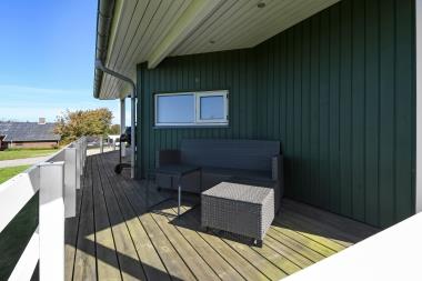 Huset har både åbne og overdækkede terrasser, udstyret med havemøbler og grill, som kan tilpasses efter behov. Uanset hvor du sidder, vil du kunne nyde læ- og solforholdene, og udsigten til Limfjorden er helt fantastisk. Der er et dejligt stisystem, som hurtigt fører dig ned til vandet. Cirka 500 meter fra huset ligger en ny, flot naturlegeplads i træ med både fodboldbane og rutsjebane – et hit for både store og små.