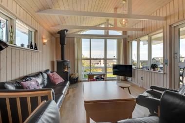 På en herlig græsplænegrund i Gjellerodde ligger dette flotte træhus med en flot udsigt over fjorden. Dejlig overdækket terrasse med havemøbler, hvorfra der også er udsigt til fjorden. Indvendigt er huset lækkert og hyggeligt indrettet med lædermøbler samt god spiseafdeling. Fra begge steder er der også udsigt til fjorden. Moderne køkken med alle moderne tekniske hjælpemidler. Fra stuen er der opgang til hems med 2 sovepladser. Helt moderne badeværelse med spabad, vaskemaskine, tørretumbler og gulvvarme. Gratis adgang til Lemvig Badeland. Gratis internetforbindelse. Stue: Brændeovn, varmepumpe, F-TV med chromecast, stereoanlæg med CD. Køkken: Keramiske kogeplader, indbygningsovn, køle/fryseskab, mikrovn. 3 soverum: 1 DS + 1 DS + 2 K. Hems: 2 sovepladser. Badeværelse: Toilet, håndvask, bruser, spabad, gulvvarme. Åben og overdækket terrasser med havemøbler og grill. El-varme. Har man el-bil eller en Plug-In hybrid, så er der en ladeboks til Type 2 ladestik ved huset. Fri adgang til Lemvig Badeland se www.lemvig.idraets-og-kulturcenter.dk.