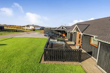 Beliggende på en ca. 1.309 m2 stor grund med en fantastisk flot udsigt over Limfjorden. carport direkte ved huset, så indgangen bliver let og ubesværet. Delvis overdækket og vindafskærmet terrasse med havemøbler, 4 solsenge samt panoramaudsigt til Limfjorden og delvis udsigt til Vesterhavet. Gasgrill. Terrassen går hele vejen rundt om huset og er helt lukket. Unikt hus til den perfekte ferieoplevelse. Der er tænkt på alt, og ejer af huset passer og plejer huset, så det altid præsenteres fra den bedste side.