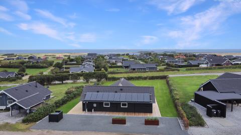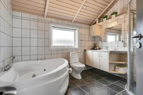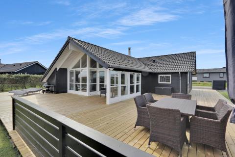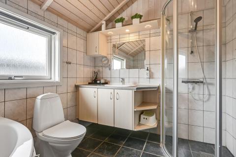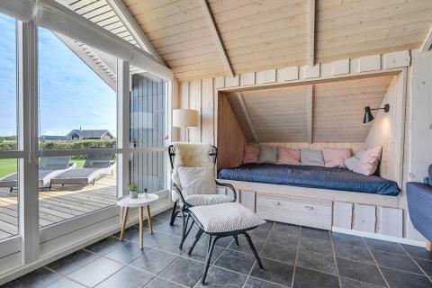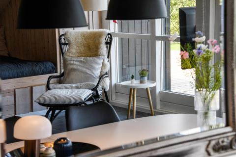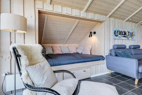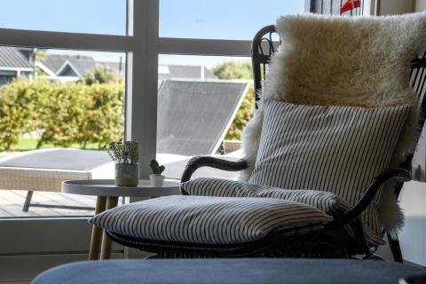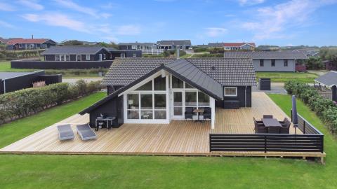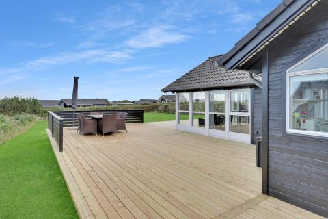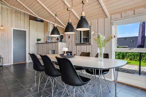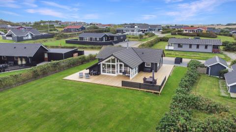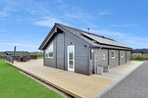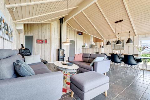 Særdeles flot, hyggeligt og velholdt feriehus på 103 m2 fra 2005. En dejlig entré med afliggeplads, vaskemaskine og tørretumbler byder velkommen. Kombineret opholdsstue og køkkenhjørne, som i 2024 er blevet optimeret af husets nye ejere og gjort endnu mere hyggelig. Opholdsstuen med gode møbler, spisebord, Smart-TV med danske og tyske programmer via fiber samt en Chromecast med mulighed for streaming af TV / radio / Apps. Der er også en DAB Radio. Slap af foran den knitrende brændeovn der sammen med varmepumpen (A++), hjælper med at reducere udgiften til varmeregningen. Køkkenhjørnet er lyst og venligt og har alt i hårde hvidevarer og i service og køkkengrej. Komfur med glaskeramiske kogeplader, indbygningsovn, airfryer, køleskab med fryseboks, mikroovn og opvaskemaskine. Praktisk klinkegulv i opholdsstue og køkkenhjørne med gulvvarme. Stort flot badeværelse med bruser, toilet, håndvask, gulvvarme, spabad og direkte adgang til sauna. Ekstra badeværelse med toilet, håndvask og gulvvarme. 3 gode soverum (1DS, 1DS, 2ES), i alle soverum er der trægulv. I opholdsstuen er der en hyggelig alkove (1 soveplads).  Utrolig velholdt feriehus til den perfekte ferieoplevelse. Der er tænkt på det meste. Ejer af huset passer og plejer huset, så det altid præsenteres fra den bedste side. Barneseng og højstol til børnene. Max. 1 husdyr tilladt. Ikke-ryger hus.