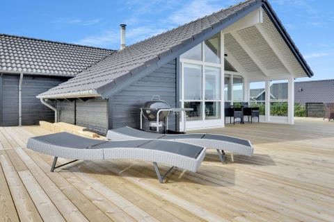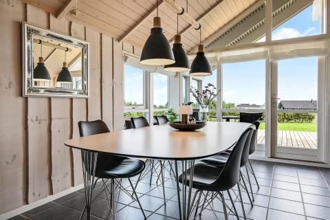 Moderne, nyere træferiehus med fantastisk udsigt over Limfjorden. Energibesparende med bl.a. varmepumpe som også kan benyttes som aircondition i sommertiden og gratis WIFI. Den skønne udsigt kan nydes både fra opholdsstuen og fra køkkenhjørnet. Et lækkert feriehus på alle årstider både til familier eller for parret, som ønsker at bo i et børnevenligt område med massere af muligheder.