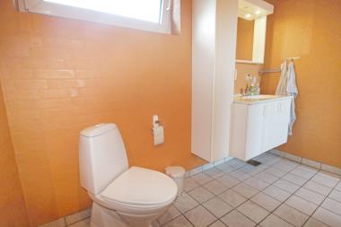 Fra køkkenet er der en trappe til 1. sal. Her er der 2 soveværelse (2ES og 1DS). Lille ekstra toilet .