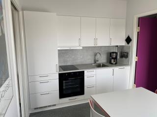 Rigtig hyggeligt indrettet ferielejlighed beliggende på 1. sal med balkon med havemøbler og parasol. Køkkenet er nyindrettet med glaskeramisk komfur, køleskab, opvaskemaskine og linoleumsgulv. Stuen er pæn indrettet og indeholder kabel-TV, radio, CD og lædermøbler og gulvtæppe. 2 soverum: 1DS + 1S og gulvtæppe. 1DS og gulvtæppe. I stuen kan sofaen slåes ud så der blir 2 sovepladser. Badeværelse med toilet, håndvask og bruser. Trappen til 1. sal består af 21 trappetrin.