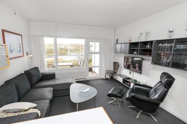 Meget pæn indrettet ferielejlighed beliggende på 1. sal med plads til 4 personer. Kombineret køkken og stue. Køkkenet er indrettet med el-komfur, køleskab med 10 l frostboks, opvaskemaskine, mikroovn og emhætte samt linoleumsgulv. Stuen er indrettet med polster og lædermøbler og sovesofa med plads til 2 personer. Kabel-TV, DVD og gulvtæppe. 1 soverum: 2S samt gulvtæppe. Badeværelse med toilet, håndvask og bruser. Fra stuen er der udgang til lille overdækket balkon med havemøbler. Trappen til 1. sal består af 40 trappetrin.