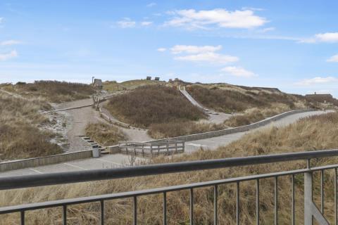 Fra stuen er der udgang til overdækket balkon med havemøbler og fin udsigt over klitterrænet. Trappen til 1. sal består af 16 trappetrin.