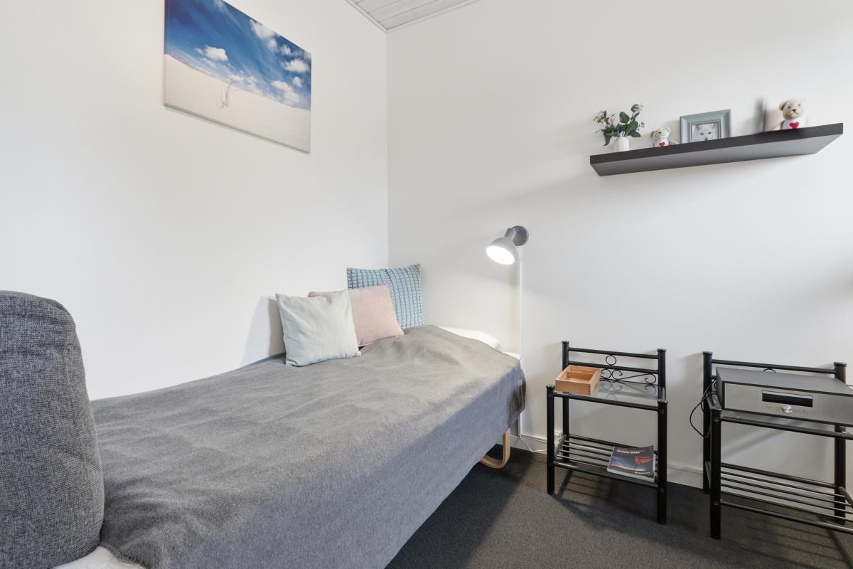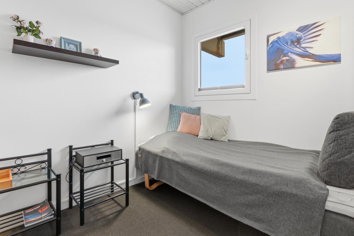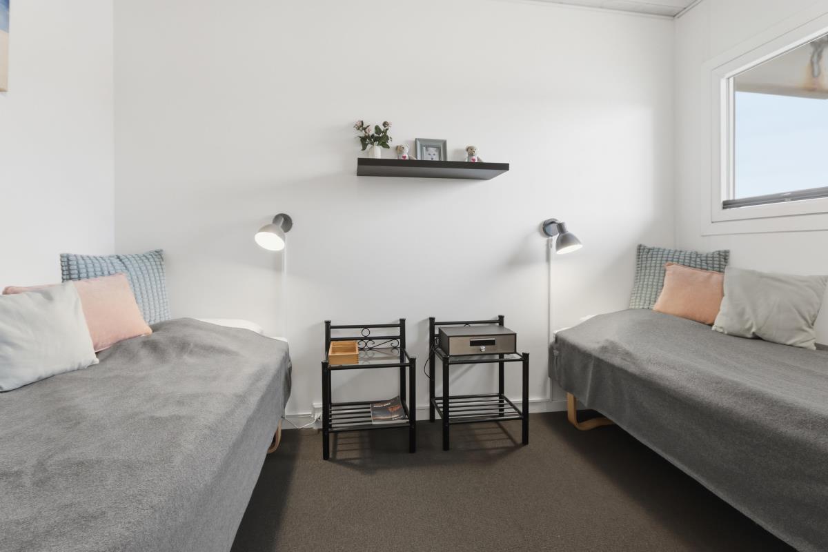 1 soveværelse: 2 enkeltsenge (90×200 cm), som også kan skubbes sammen, samt gulvtæppe.