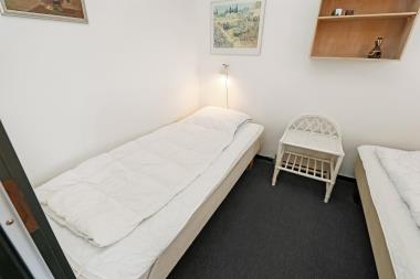 Pæn ferielejlighed til 4 personer beliggende i stueplan. Kombineret køkken og stue. Badeværelse med toilet, håndvask og bruser. 1 soverum: 1DS + 1S tæppe på gulvet. Køkkenet er indrettet med el-keramisk kogeplade, miniovn, opvaskemaskine og køleskab med lille frostbox. Stuen er indrettet med polster og lædermøbler, kabel-TV, der er 2 sovesofaer i stuen, som kan slåes ud, så der bliver i alt 3 sovepladser, der er tæppe på gulvet. Fra stuen er der udgang til lille delvis overdækket terrasse med havemøbler og 1 solvogn.