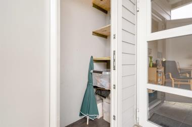 Pæn indrettet ferielejlighed til 2 personer, beliggende i stueplan med kombineret opholdsstue og køkken. Stuen er indrettet med polster- og lædermøbler og gulvtæppe. Kabel-tv, DVD, radio. Køkkenet er indrettet med glaskeramisk kogeplade, indbygningsovn, emhætte, opvaskemaskine, mikroovn og køleskab med 10 l fryseboks, klinkegulv. Badeværelse med toilet, håndvask og bruser. 1 soverum med 2S. Fra stuen er der udgang til delvis overdækket terrasse med havemøbler. Trappen til 1. sal består af 24 trappetrin.