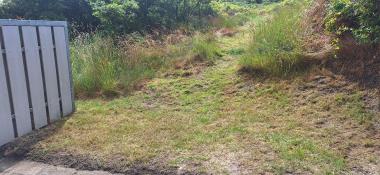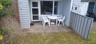Enkelt indrettet ferielejlighed i stueplan med lille delvis overdækket terrasse med havemøbler. Kombineret køkken og stue. Køkkenet er indrettet med glaskeramisk komfur, emhætte, køleskab med lille frostbox, opvaskemaskine og linoliumsgulv. Stuen er med læder og polstermøbler og kabel-TV. Sofaen i stuen kan slåes ud så der blir 2 sovepladser. Badeværelse med toilet, håndvask og bruser. 1 soverum: 2S og pergogulv. Trappen til 1. sal består af 10 trappetrin.
