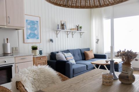 Ferielejlighed i stueplan med en lys og afslappet sommerhusstemning – ideel til 2 personer, som ønsker ro, nærhed og ferie i rolige omgivelser ved Vesterhavet. Lejligheden er indrettet i lyse nuancer med hvide træpaneler på væggene, lyse gulve og naturlige materialer. Små detaljer er med til at understrege sommerhusstemningen og skabe en varm og indbydende atmosfære. Der er gratis internet og streaming TV.