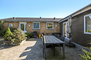 Udgang til dejlig delvis overdækket terrasse, velholdt grund samt stor, ugenet gårdhave.