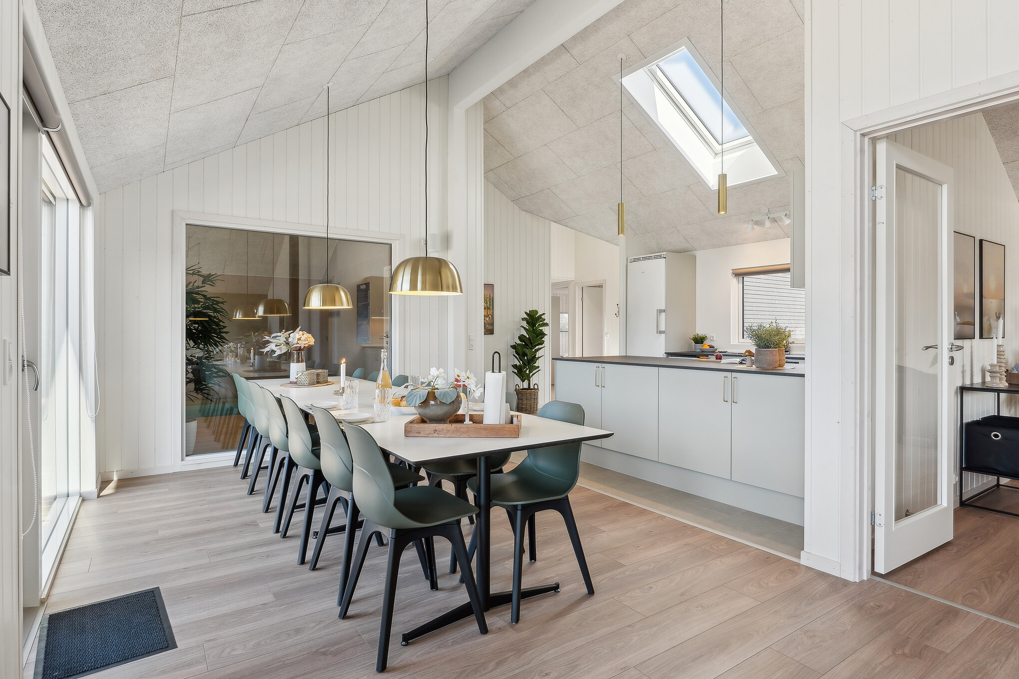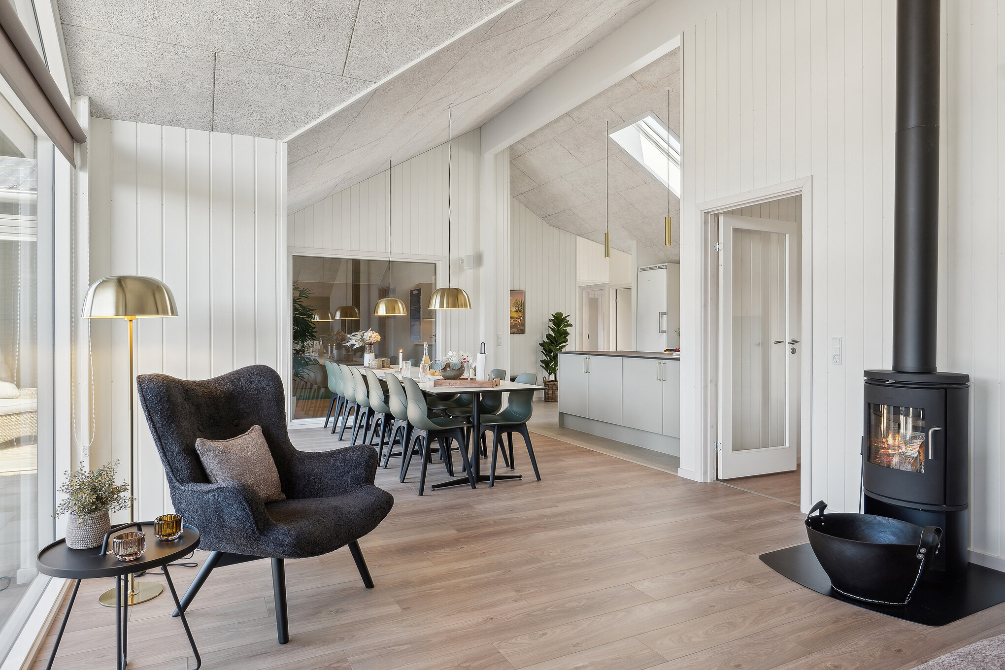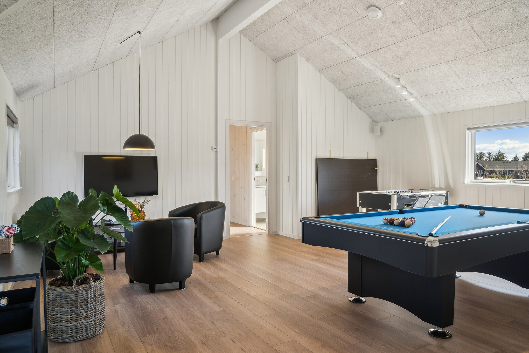 Dette indbydende Sammenhus™ nær Hvide Sande er skabt til fælles ferier med både aktiviteter og afslapning. Sommerhuset rummer op til 14 personer fordelt på 5 værelser samt 4 sovepladser på hems og har 2 badeværelser, der gør opholdet praktisk for større grupper. Husets hjerte er den lyse poolafdeling med saltvandspool og børnevenligt lavvandet område, som kan nydes året rundt. Aktivitetsrummet byder på billard, bordtennis og dart, mens opholdsrummet samler køkken og stue i et åbent og hyggeligt miljø med brændeovn. Udenfor venter terrasse med grill, lounge, udespa og sauna samt have med trampolin og gynger. Kun ca. 400 meter fra Vesterhavet og tæt på strand, klitter og byliv.