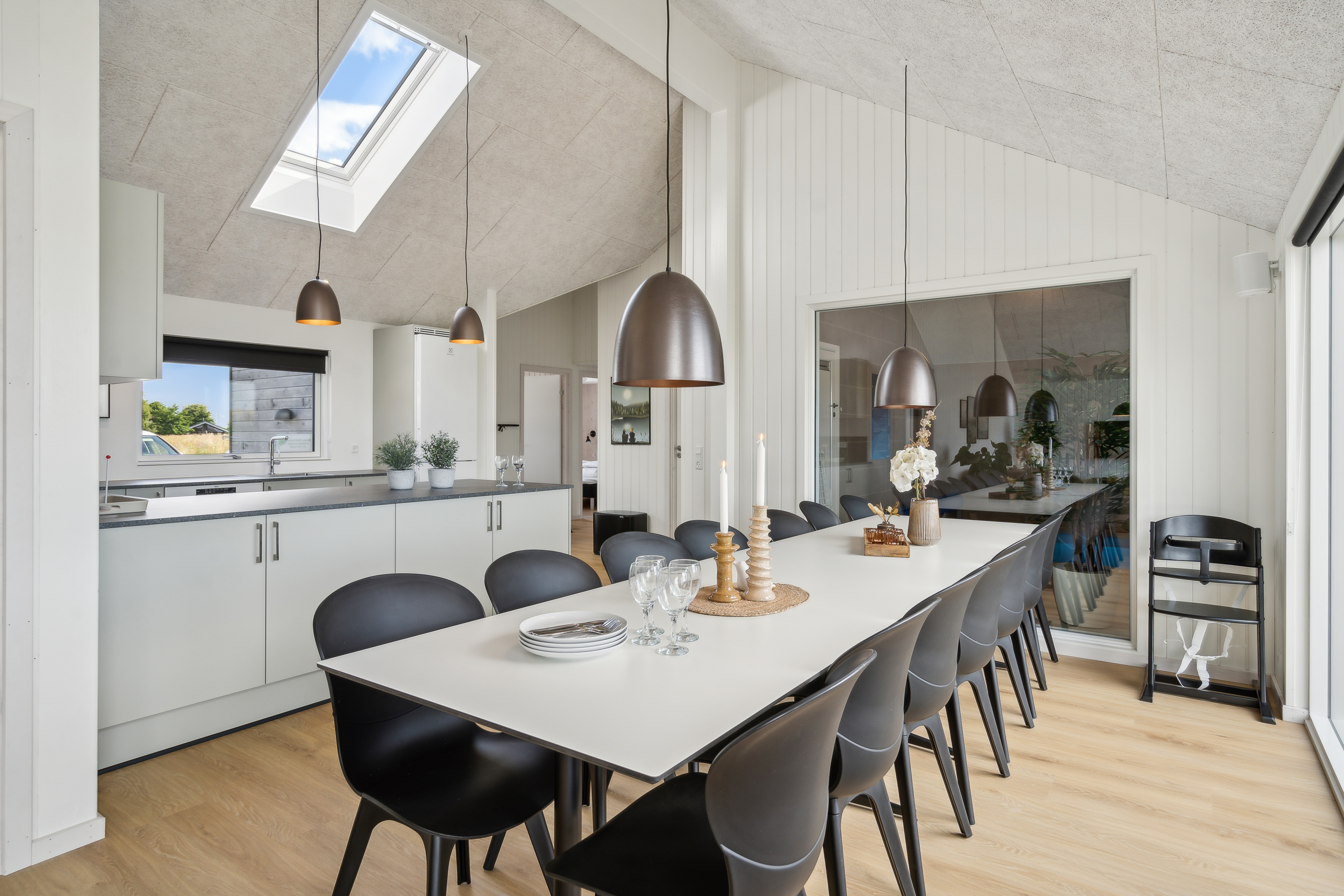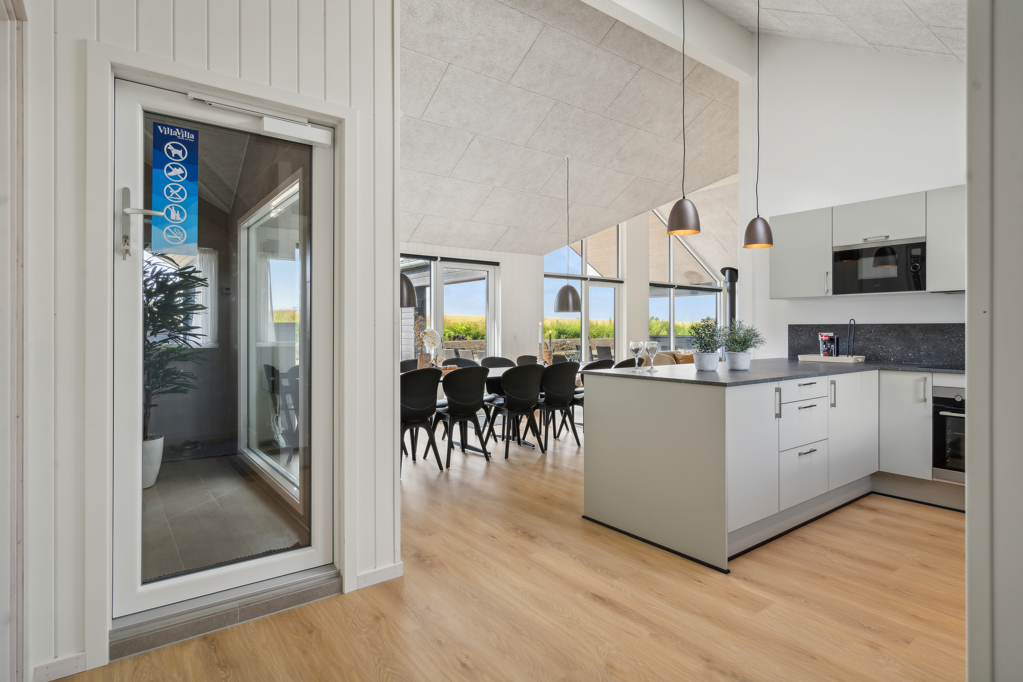 Dette indbydende feriehus i Hvide Sande er skabt til afslappende og oplevelsesrige ferier for op til 14 personer. Her får I både pool med børneområde, aktivitetsrum og et lækkert wellnessområde med udespa og sauna. Poolafdelingen er husets naturlige samlingspunkt, hvor både børn og voksne kan nyde ferien, og herfra er der direkte adgang til terrassen med wellness under åben himmel. Aktivitetsrummet byder på billard, bordtennis, dart og tv, mens opholdsrummet samler køkken, spiseplads og stue i hyggelige rammer med brændeovn. Den store terrasse indbyder til grill, afslapning og udeliv i al slags vejr. Beliggenheden i Hvide Sande giver jer nem adgang til strand, natur og autentisk vestkyststemning.
