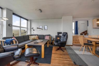 Dejligt stor entre med trappeopgang til 1. sal, hvor der er 2 soverum med hver en doppeltseng samt badeværelse med toilet, håndvask, vaskemaskine og tørretumbler. Fra det ene soverum på 1. sal er der udgang til en lile balkon med flot udsigt over området og klitterne. I stueplan finder I køkkenet med el-keramisk-komfur, opvaskemaskine, microovn og køleskab med 80 l fryser. Stuen, som er i forbindelse med køkkenet, er indrettet med dejlige polster-møbler og TV med danske og tyske programmer, der er desuden CD-afspiller. Baderummet med 5 personers standvansspa, der står med opvarmet vand hele tiden, har en helt speciel atmosfære p.g.a. den buede væg med store vinduer, hvorfra man har en flot udsigt over klitterne. Desuden er der bruser, toilet og adgang til sauna i dette rum. Trægulve i soverummene og i opholdsstuen er der mahonigulv. Resten af huset har klinkegulv. 4 soverum: DS + 2 ES + på første etage: (DS + Balkon) + DS, Gratis trådløs internetforbindelse i huset. Til huset hører også en dejlig terrasse (muligt at lukke af for børn og hunde) med havemøbler, solsejl, liggestole samt sandkasse og gynger. Ikke rygerhus. Og har man el-bil eller en Plug-In hybrid, så er der til huset et ladestik. Der er adgang til Harboøre-Centeret