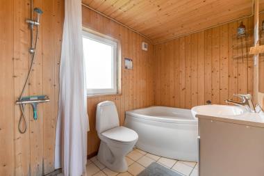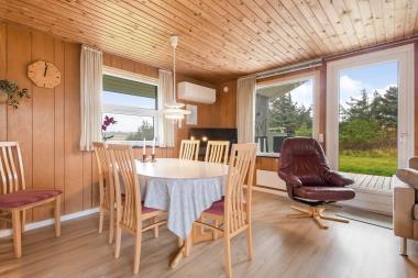 Dejlig indrettet feriehus beliggende på en naturgrund tæt på Vesterhavet. Terrasse med havemøbler og grill. Gratis internetadgang. Stue: Brændeovn, farve-TV med parabol (kun tyske kanaler), DR kanaler, radio. Køkken: Glaskeramisk komfur, køleskab med 20 l. fryser, opvaskemaskine og mikroovn. 3 Soverum: 1 DS + 2 S. Anneks: 1 DS. Barneseng og barnestol. Badeværelse: Toilet, håndvask og bruser. Vaskemaskine og tørretumbler. Badeværelse anneks: Toilet, håndvask, bruser, sauna og spa samt gulvvarme. Terrasse med havemøbler og grill. Gynger og sandkasse.