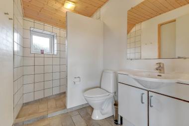 Dette rummelige feriehus er særdeles velindrettet og byder på en høj komfort. Der er hele to badeværelser med gulvvarme. Det ene badeværelse har direkte adgang til husets sauna, mens det andet ligger i forbindelse med et stort wellnessrum med en lækker 4-personers whirlpool. Begge badeværelser har flotte, rummelige brusenicher.
