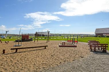 Til de små gæster er der flere legepladser, hvor man kan suse ned af rutschebanen eller man kan hoppe løs på hoppepuderne.
