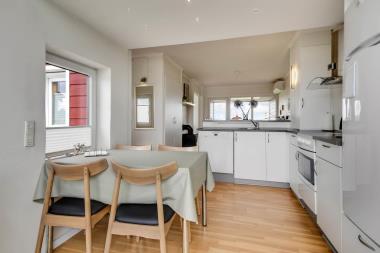 Lejligheden er renoveret i 2015 med blandt andet nyt køkken med opvaskemaskine. Her er glaskeramisk komfur, emhætte, køleskab med separat fryser på 10 liter. Der er trægulv over det hele med undtagelse af badeværelset som er belagt med klinker. Stuen er hyggelig indrettet med sofabord, sofagruppe, brændeovn, samt kabel-tv med DR, TV2, tysk EUROSPORT 1 og RTL, der er installeret varmepumpe i huset og det betyder at du som gæst kan spare en del på din elvarmeregning – varmepumpen leverer op til 4 gange så meget effekt som den bruger, det betyder at for hver kilowatt-time pumpen bruger yder den varme svarende til ca. 4 kW energien udnyttes dermed langt bedre. Her er også direkte udgang til balkon med havemøbler. Der findes også en anden stue med spisebord hvor der er en sofa, der kan laves om til sovesofa til 2. Her kan man vågne op til udsigt over limfjorden, men solens står op i øst. Herudover er der soveværelset med dobbeltseng samt en hems med 2 sovemuligheder. Vær opmærksom på at for at komme op på hemsen skal man kravle op ad en ribbe. Har man el-bil eller en Plug-In hybrid, så er der 4 Ladebokse til Type 2 ladestik, der kan lade op til 11 kWh ved Feriecenteret – de er lige efter miljøstationen.