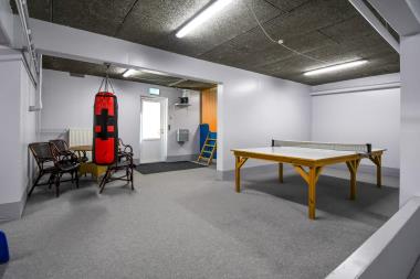 Feriecenteret har også et aktivitetsrum, hvor man kan udfordre hinanden i bordtennis eller lege i boldbassin.