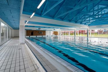 Har man lyst til at bade, når vejret ikke lige er solrigt, kan man tage i svømmehallen, der også byder på spabad og dampsauna.